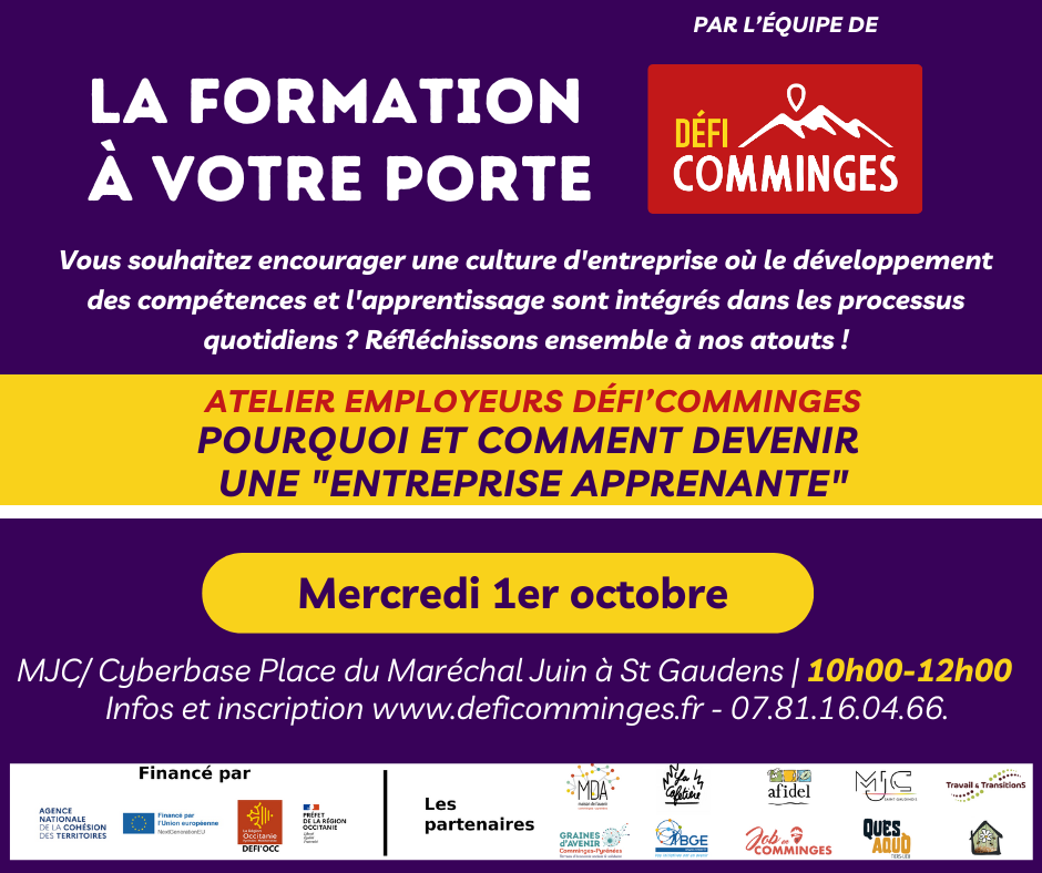 Un consortium de partenaires du Comminges pour amener l'information et la formation au plus près des habitants, dans leur tiers-lieu de proximité ! Egalement, des rencontres ciblent les partenaires et les entreprises, pour une meilleure interconnaissance et des facilités d'accès à l'emploi. Visitez le site dédié pour en savoir plus !