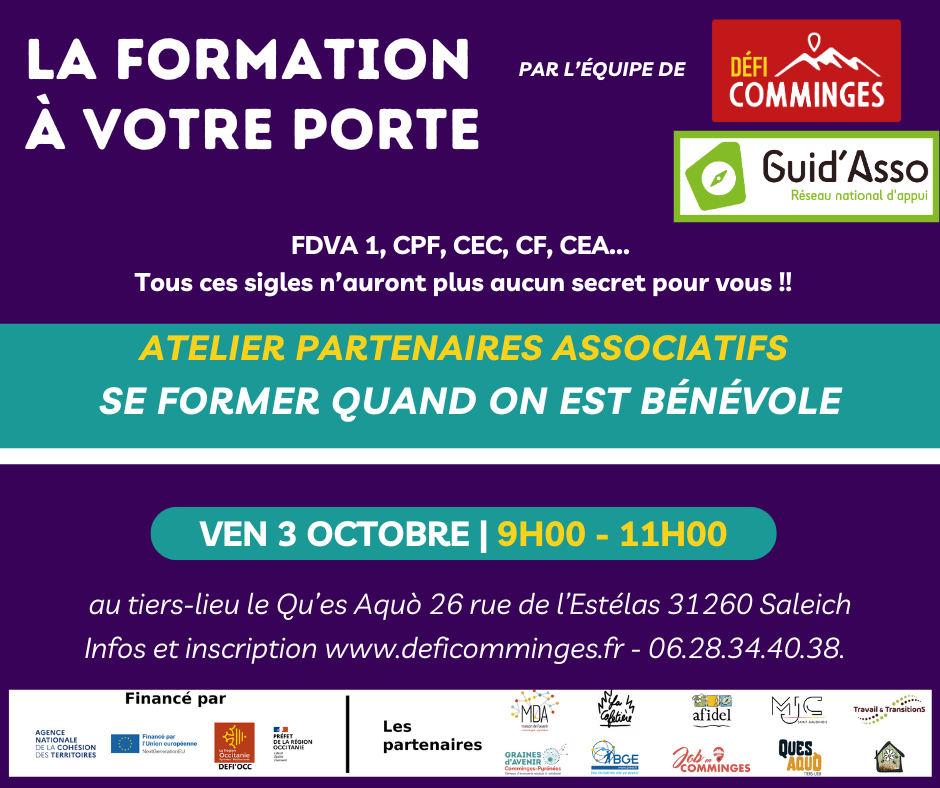 Cette opération est financée par la Région Occitanie dans le cadre de l'appel à projets Défi'Occ qui a pour objectif d'offrir des solutions de formations professionnelles au plus près de votre domicile en s'appuyant sur le réseau des tiers lieux du Comminges !
